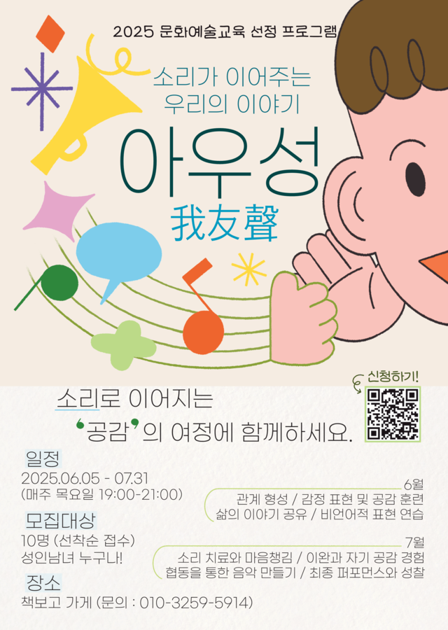 | 일정 | 2025. 6. 5. ~ 7. 31. (매주 목요일 저녁 7~9시) |