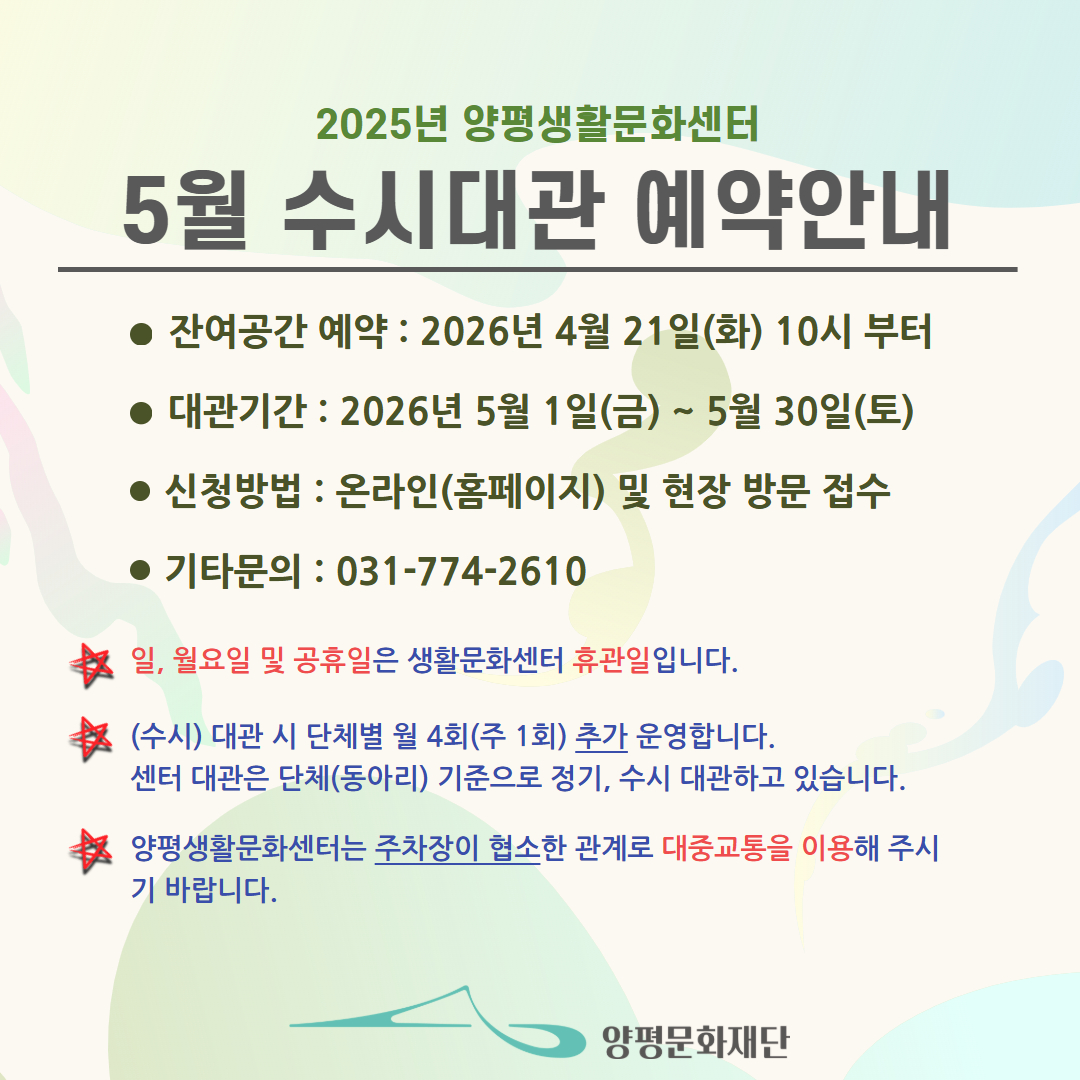 문화 활동을 하고자 하는 양평 시민 모두에게 열려 있으며