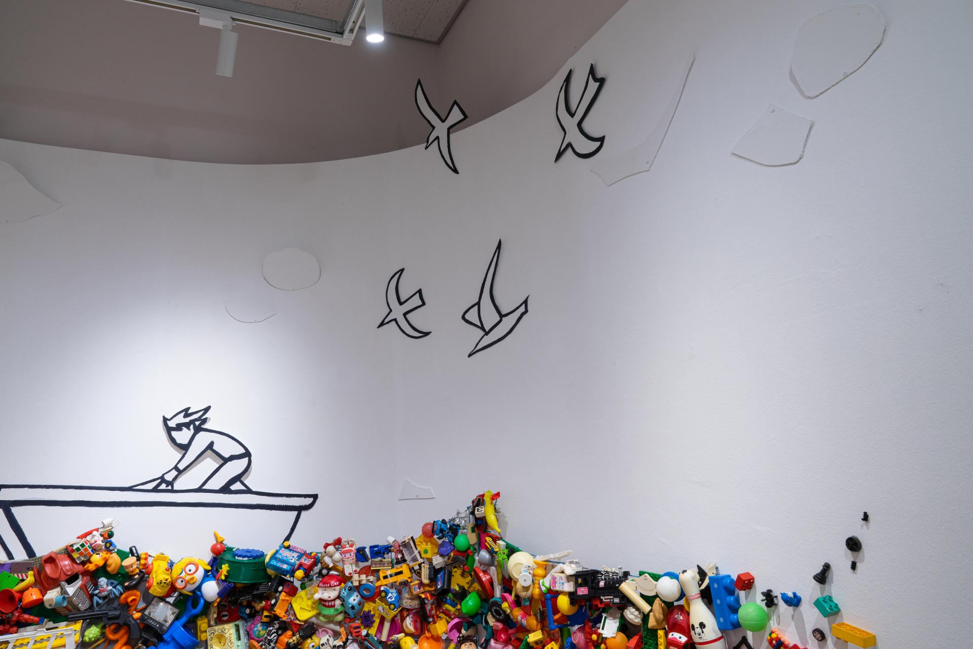 Divine Love-절대적 사랑 2025 백자토, 물레성형 | 사용된 꿈-낚다 2014, 폐장난감, 가변설치 |